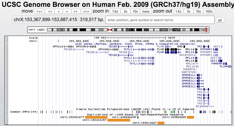 Another example featuring the Segmental Dups track is the 15q11 Prader-Willi region in which same-chromosome duplications lead to gain and loss of copies and a rare genetic disorder when some genes are deleted or unexpressed.
