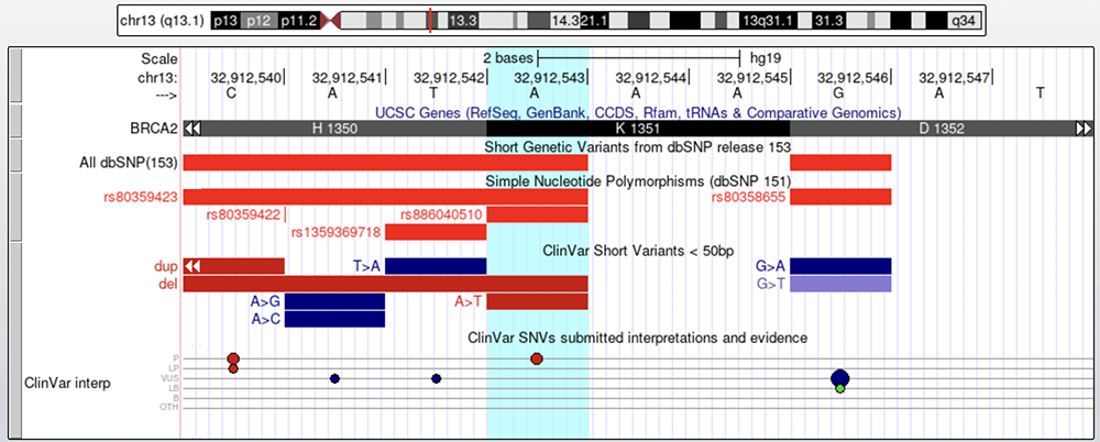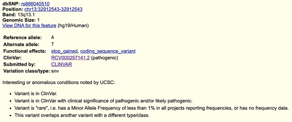 An active Browser session for this view can be found at https://genome.ucsc.edu/s/education/hg19_BRCA2variants