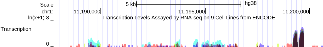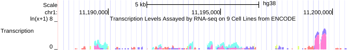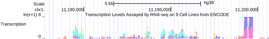 The track displays the wiggle value associated with each annotation feature creating a histogram-like image.